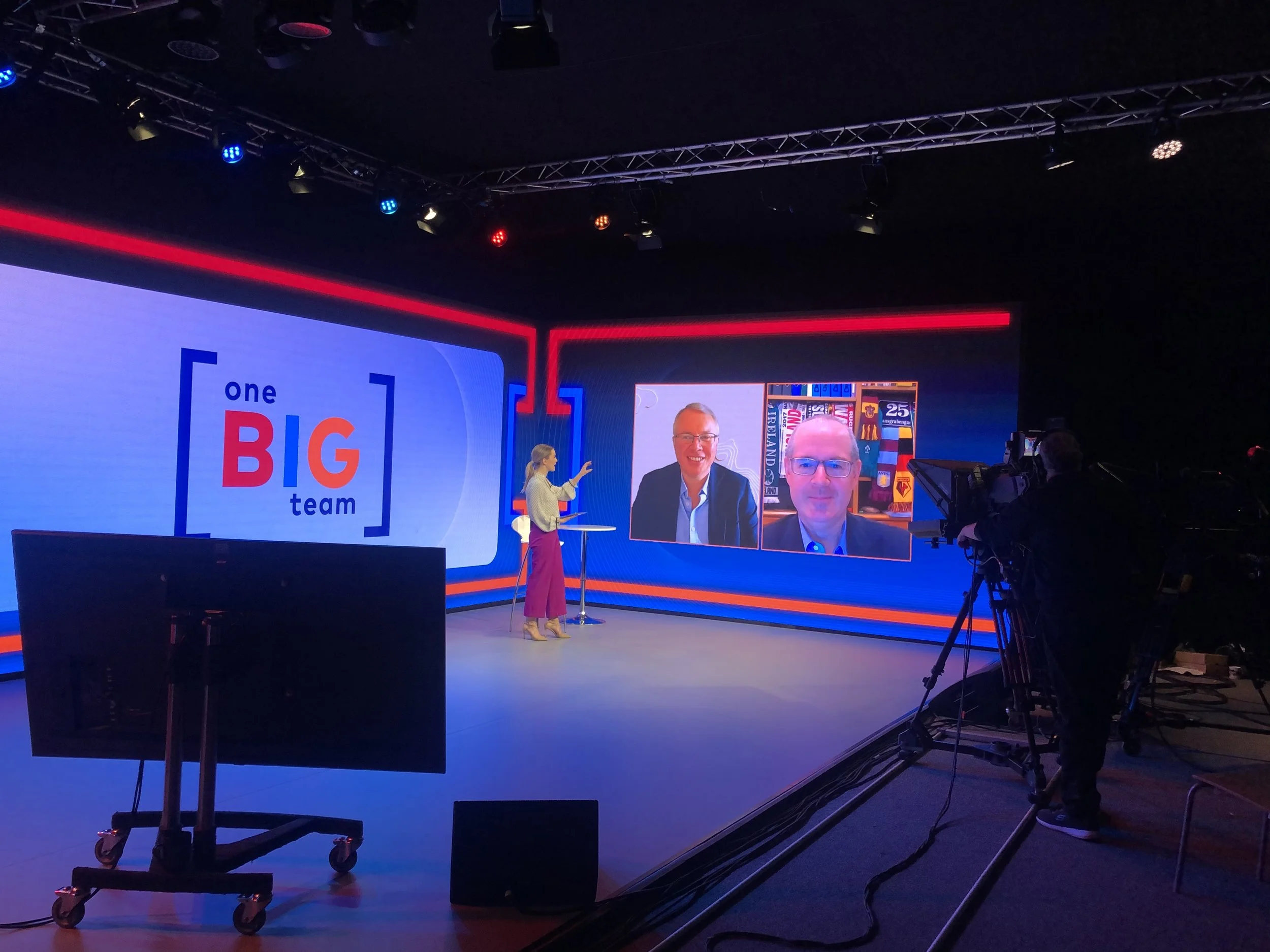 The conference was streamed from a central UK studio, with a professional TV presenter facilitating two days of structured conversations involving the executive leadership team. The format was intentionally designed to move away from passive broadcast, introducing more conversational delivery, storytelling and audience interaction.